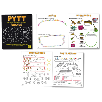 I PYTT Orange tränar eleverna på att ljuda korta ord och arbetar med kopplingen antal/talen 10 t.o.m 20. Det genomgående temat i de 40 sidorna är hälsa.